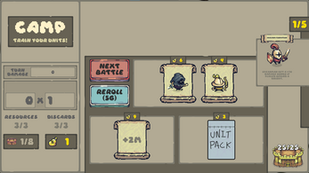 - Roguelike Deckbuilding Tactics – Build your army by recruiting new Units, unlocking Battlefield Improvements, and employing new Battle Tactics after each round.